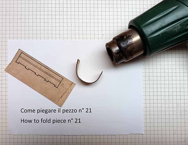 Nota: Per piegare il pezzo n° 21 bisogna inumidirlo con acqua