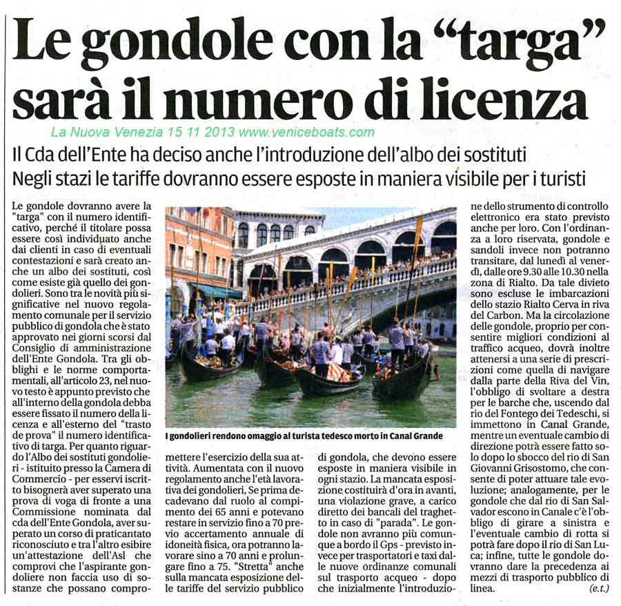 scomparsa delle gondole, Il Gazzettino 11 9