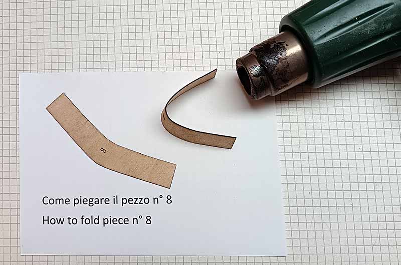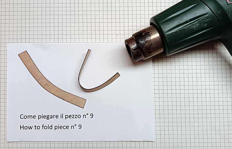 To fold the pieces n ° 8, 9 you have to moisten them with water and heat them